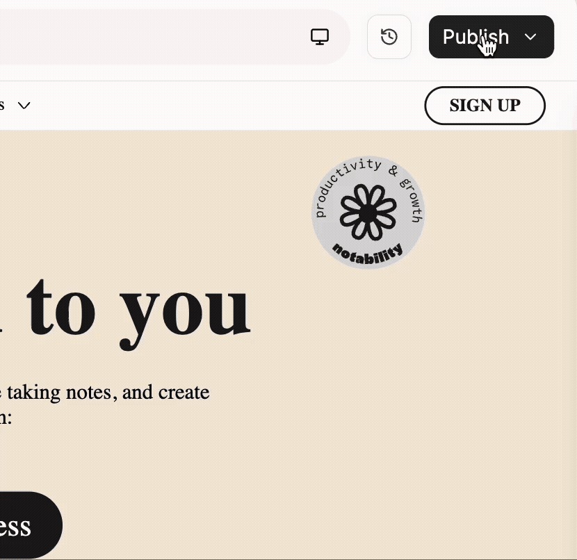 Another part of this core experience is the publishing experience, where I added a moment of delight through nice touches of color and pixelated animations!
